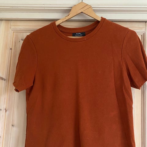 T-skjorte i kul oransje/ gul farge fra Zara. Veldig behagelig og mykt stoff. 53% bomull og 47% polyester.