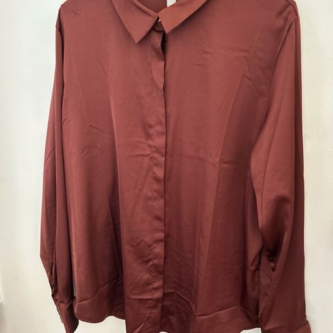 Bluse, H&M, 100% polyester, strikk i livet, tynn og gjennomsiktig, 3/4 erm, farge brun, meget lite brukt, str 44