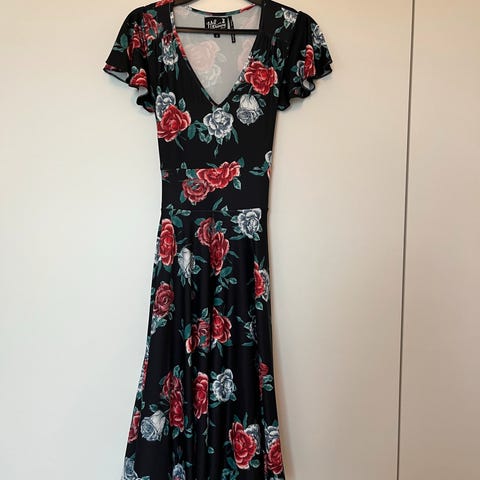 (I minste laget, spesielt trang i midje og bryst/rygg, har glidelåsen i rygg delvis åpen på alle bildene = preferanser). Målebåndet: Armpit to pit ca 40cm. Tversover midjebånd ca 33/34cm. Fra nakke til hem ca 104cm.