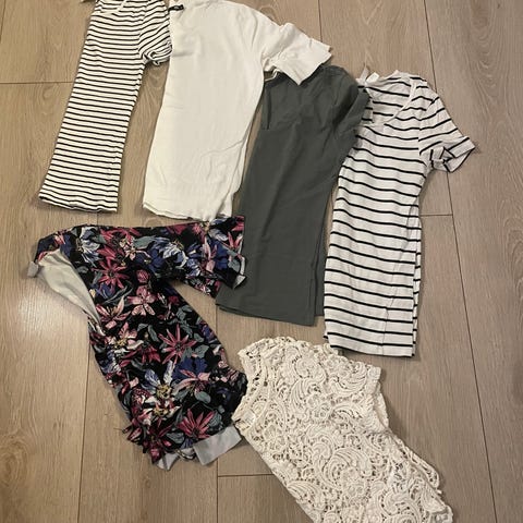 Selger klespakke bestående av fem t-skjorter i str. S.