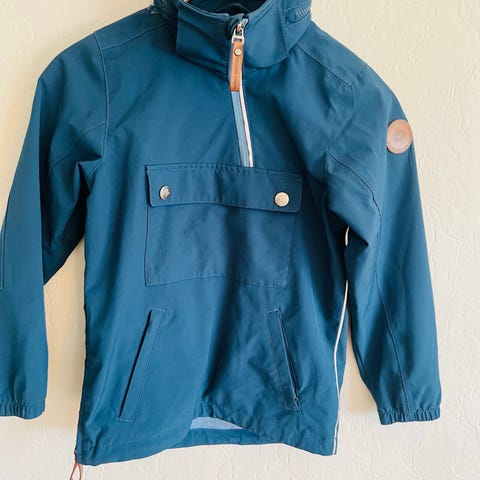 Flott jakke, lite brukt. Str 12 år.Pelsen kan tas av, festet med glidelås. Fargen på bildet 2 er riktig, mørk blå.