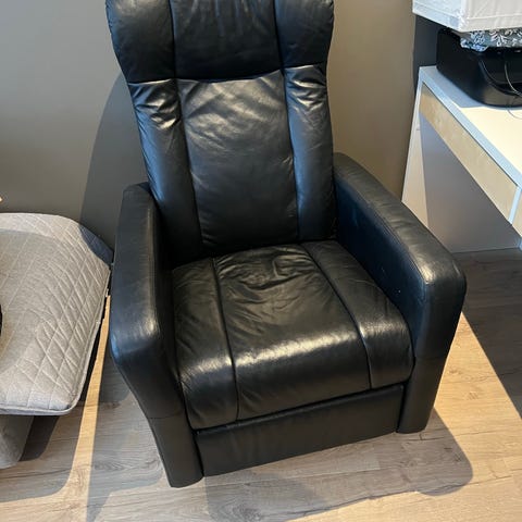Hatt besøk av pus på siden. Heilt grei å ha på hytta eller i ungkarsbula. Knallgod å sitte i.