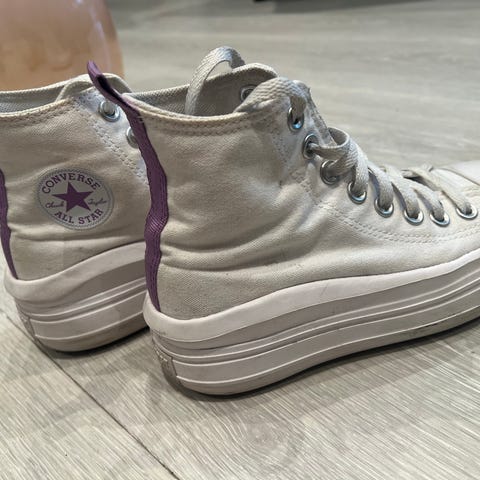 Hele og fine, høye Converse selges. Modellen heter Chuck Taylor all star move.