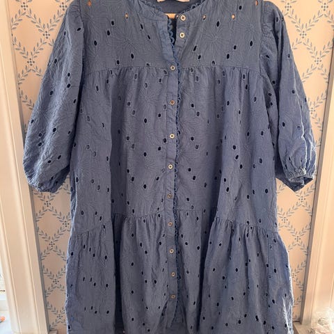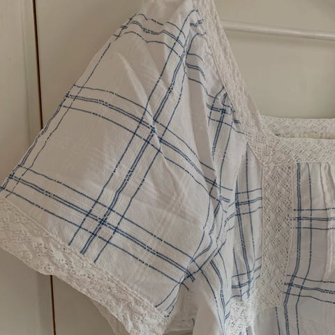 Fine broderier og hullbroderier nede på toppen.