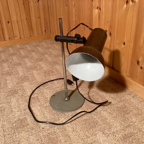 Superfin retro bordlampe gis kort da vi dessverre ikke får brukt den i nytt hus. Lampen fungerer helt som den skal, og lampeskjerm følger med hvis ønskelig.