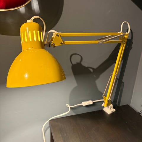 Velholdt og flott arkitekt lampe, rød,/oransje.