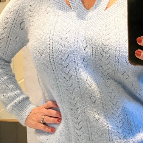 Nydelig blå genser fra Ellos i str 38/40 med split på siden
