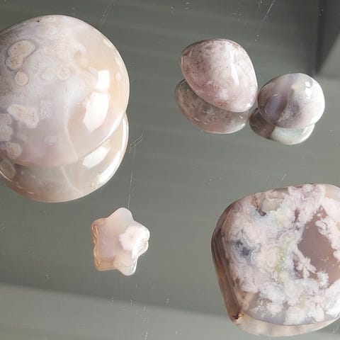 fargerik stein, krystaller, steinsamling. blå, rosa, gul, lilla, unik.