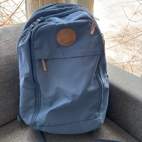 Den bærer naturligvis preg av bruk, men er i fin stand. Har bare blitt brukt i ca 6 mnd i barnehage, før en annen sekk ble favoritt. ☺️