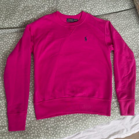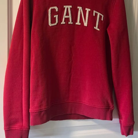 Lekker college genser fra LaCoste i en fin korall rødfarge som ikke kommer helt til sin rett på bildene dessverre.