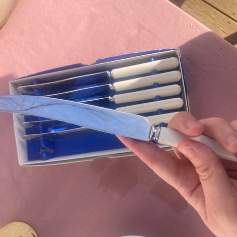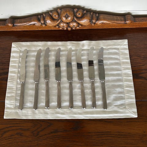 12 meget fine kniver. Nesten som nye. Ligger i «etui»