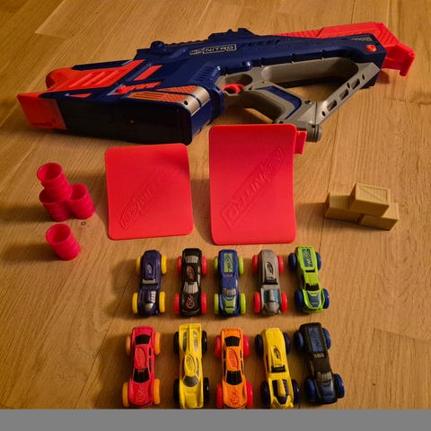 Motorisert, virker med batteri. Den kan skyte biler gjennom banen. Kan brette seg for å ta mindre plass.