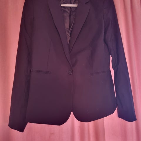 Svært lite brukt blazer i str 34 og skjorte i str 146. Brukt 1 gang av jente på 12 år. Nyvasket. Perfekt til 17.mai.