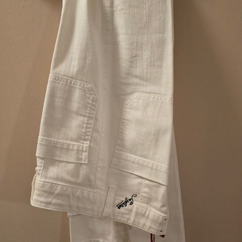 Bukse fra Tomorrow i superdeilig stretch og knallfin på. Smal modell med splitt nederst.