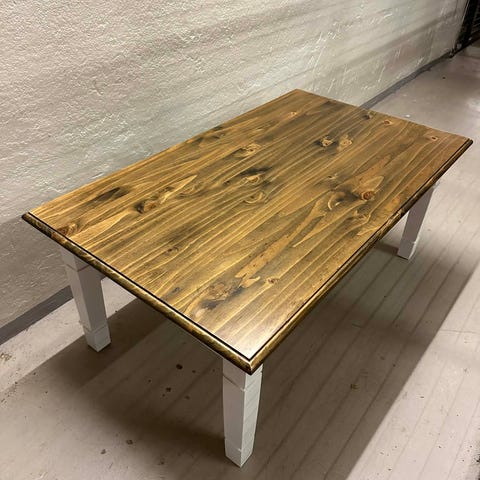 Godt brukt. Trenger behandling. Se alle bilder nøye, da vet du tilstanden. Men det er faktisk en solid og stabil bord.