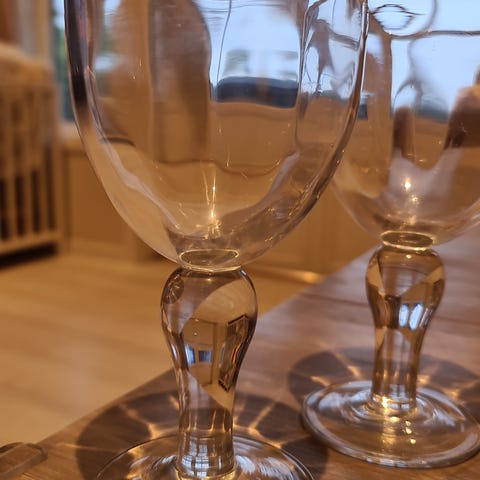 3 eldre fine drammeglass på stett med mønster selges samlet kr 150,-.