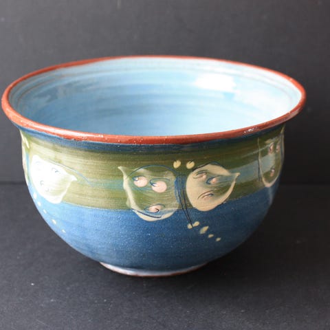 Meget pen keramikk bolle. Ukjent fabrikat. Diameter ca 21, høyde ca 12 cm.