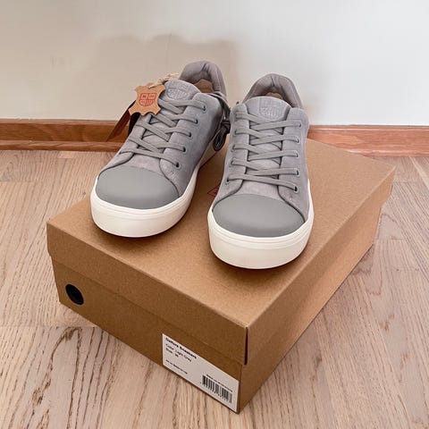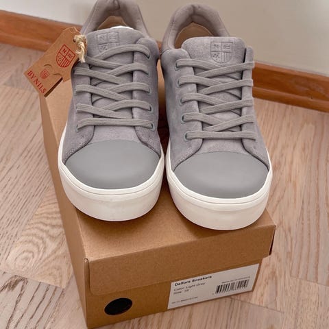 Grå, fine sneakers. Kjøpt i 2 farger og sønnen har favorisert de grønne. Disse er ubrukt, skoeske medfølger.