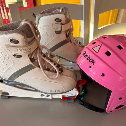 Riedell kunstløpskøyter laget i USA. Skinn og sålen laget av treverk. Wilson Skates laget i England. Her får du ekte kunstløpskøyter. Størrelse 4.5 US. Tilsvarer størrelse 33-34.