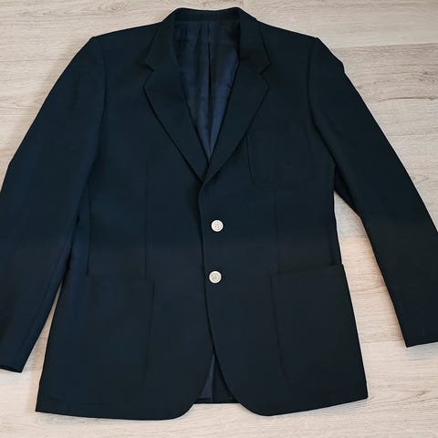 Mangler én knapp, rift innelomme og vært sydd i ene armhulen.