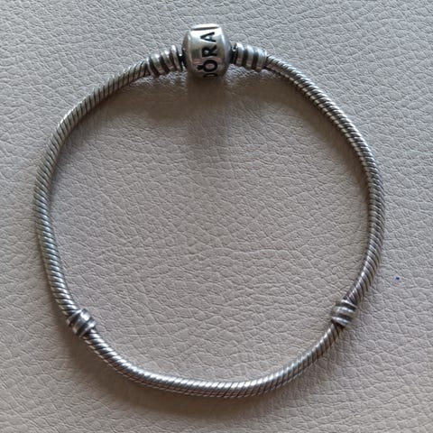 Selger et Pandora armbånd i sølv. Mål er 19 cm