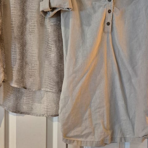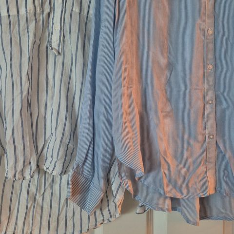 Skjorter/bluser. 60,- kr for den grønne(er kun vasket, ikke brukt. Den hvite er ny, med lapp, så ikke brukt. Den koster 110,-