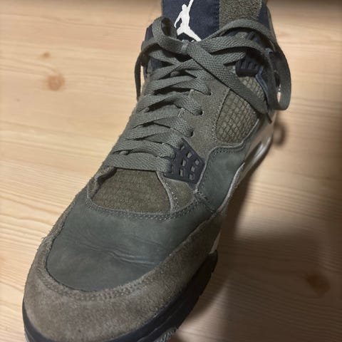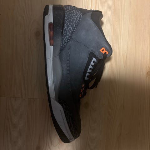Hvite og grå Nike Air Jordan sko selges.