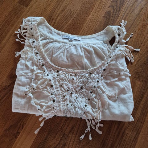 Pent brukt skjorte i str 44/46. Pene broderier i beige farge. Luftig og lett plagg.