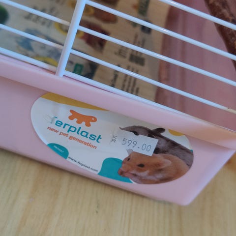 Dette buret er i utganspunktet for lite, til av hamsteren skal trives.