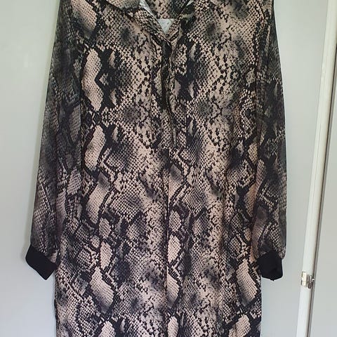 Blusen er koksfarge, sort og lyse grått. Brukt 1 gang, selges grunnet vektoppgang 🙈