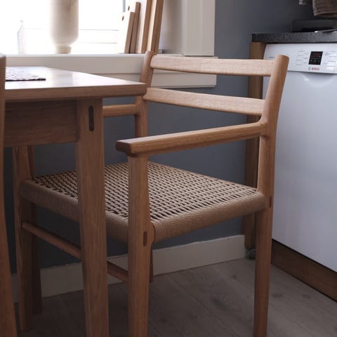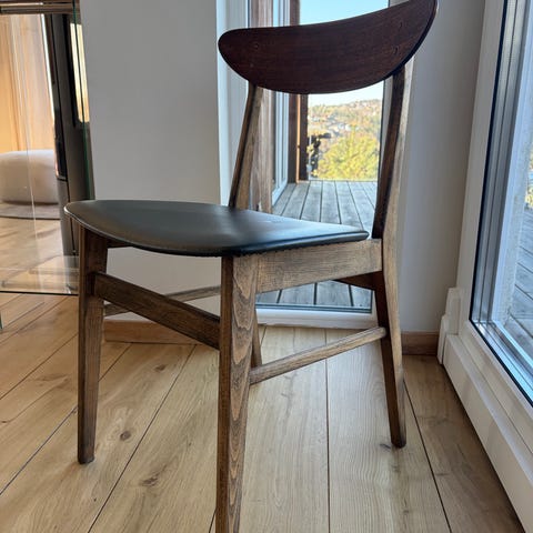 Hertug spisestol fra Eikund er elegant med enkle og organiske linjer som gir god sittekomfort og som gjør at den passer inn i alle slags interiør. Stolen er designet av Fredrik A. Kayser og reprodusert av norske Eikund. Stolen har ikke vært i bruk. Les mer på; https://www.euklides.no/produkter/hertug