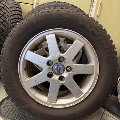 Volvo felger med 2 gode piggdekk uten pigger å 2 mindre mønster. Men er merket DOT (1715).