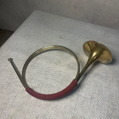 Dekorativt 100 år gammelt blåseinstrument i messing med vakker patina!