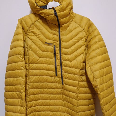 Helt ny. Superlett dunanorakk som kan brukes som underlag om vinter, som yttertøy ellers på fjelltur, etc. Kjøpt på salg, kr1370 ( halv pris) men dessverre er litt for liten. Selges for kr 1000. Sendes med posten, dårlig erfaring med helt hjem. Mer info søk opp på nettet. Her finner du anorakken. Orange farge er ikke like lett å få tak i.