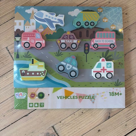 Morsomme avtagbare klistremerker. Kan brukes om og om igjen. Fint til f.eks. biltur. Mangler bil nr 1 og zebra. Godt brukt med noen merker her og der ,men mye lek igjen.