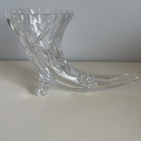 Fint horn i krystall selges det er h12,5 og ca 22 cm l. Helt og fint