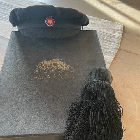 2 stk studenterlue i sort ull med silkesnor/ dusk selges.