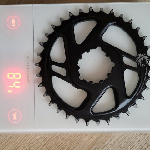 Drev 32T SRAM Eagle. Jeg har brukt den selv rundt 100+ km etter kjøp av sykkelen som jeg ombygget.