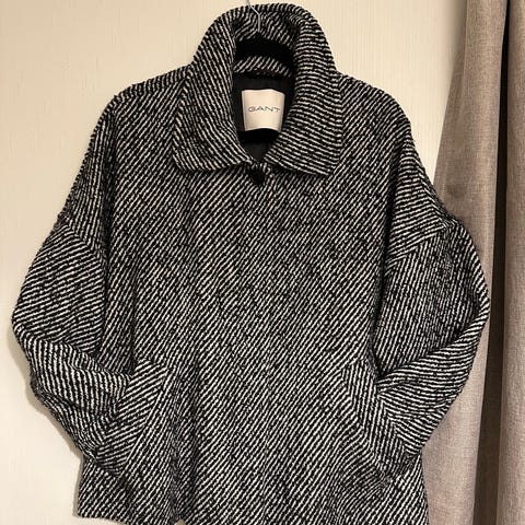 Fin ubrukt mørkeblå damejakke i ull/boble i størrelse M Gant. Fin nyvasket Filippa K jakke i størrelse X-small. Pris tilsammen kr 600,-. Eller kr 450,- for Gantjakke og kr 150,- for Filippa K jakke.