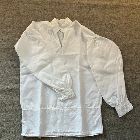 Ferdig håndbrodert lin og montert bunadsskjorte