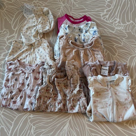 Klespakke med sommertøy til jente i størrelse 62 selges.