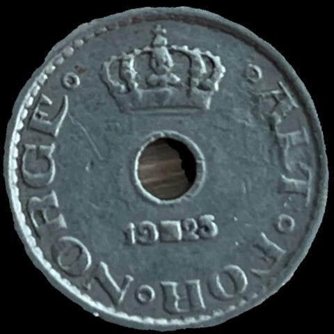 10 st fine 10 kr mynt. Norge. Varierende årstal.