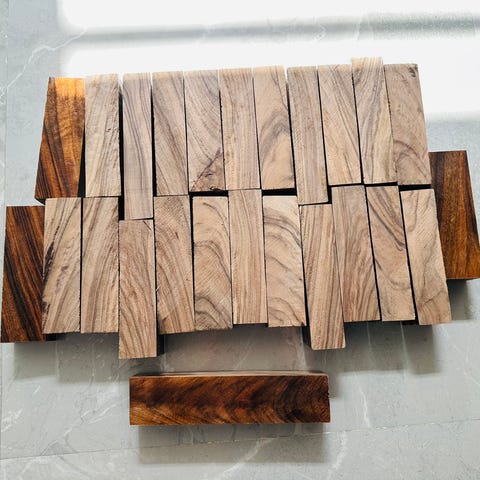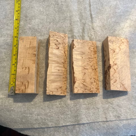 Valbjørk og diverse koter. Selges kr 100-150 for små og 3-500.- for de store. Mange ulike tresorter. Tørket langsomt over tid inne.
