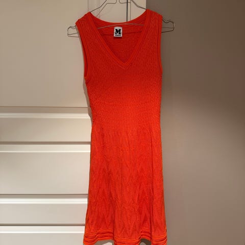 Strand kjole/sommer kjole fra MISSONI i rosa og lakserødt mønster med hvite og sorte striper, 2 stropper foran og en bak i rygg. Fargemønsteret er som en minikjole i lengden, frynsene videre går til en fotsid lengde. Str IT38 / Small. Ny, aldri brukt.