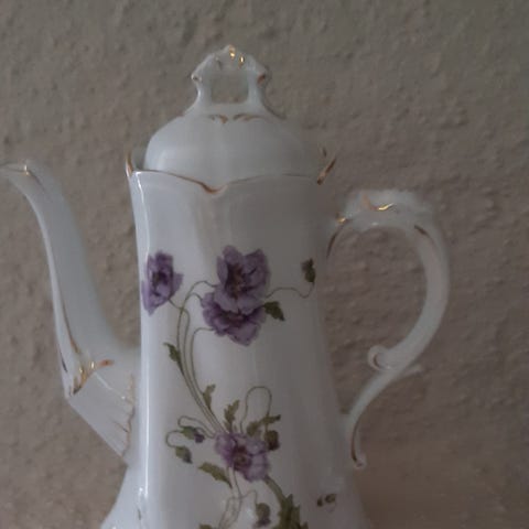Søt kaffekanne i porselen med blomstermønster. Ingen sprekker. 🌼