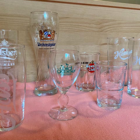 Gamle ølglass og shotsglass