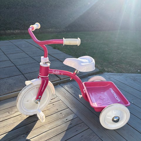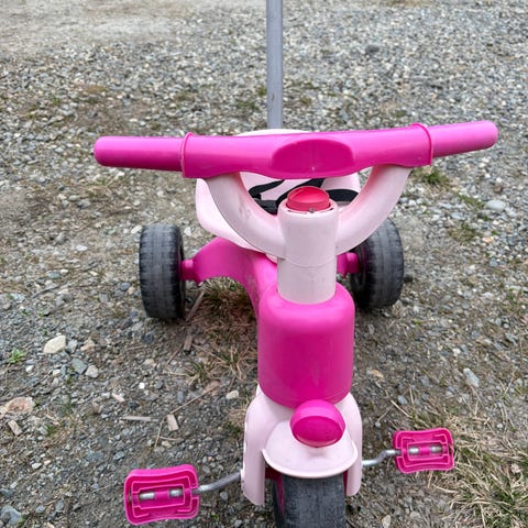 Mangler gummihåndtak på styret men funker fint og tåler mye.