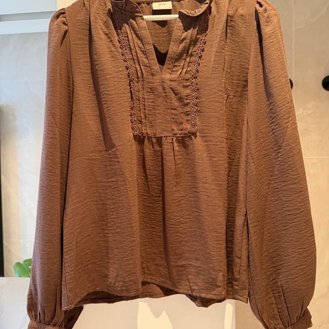 Veldig lite brukt skjorte i en sjokoladebrun farge. Er en XS, men passer også fint en S.