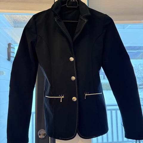 Svart stevnejakke fra Equipage i str 38. Lett elastisk og vannavvisende stoff, lommer med glidelås, Lukking foran med knapper og fin innsvinget passform. Kan sendes for kjøpers regning eller hentes hos meg i Oslo.