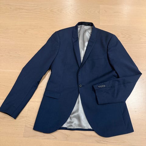 Størrelse på jakke og bukse er ikke oppgitt.